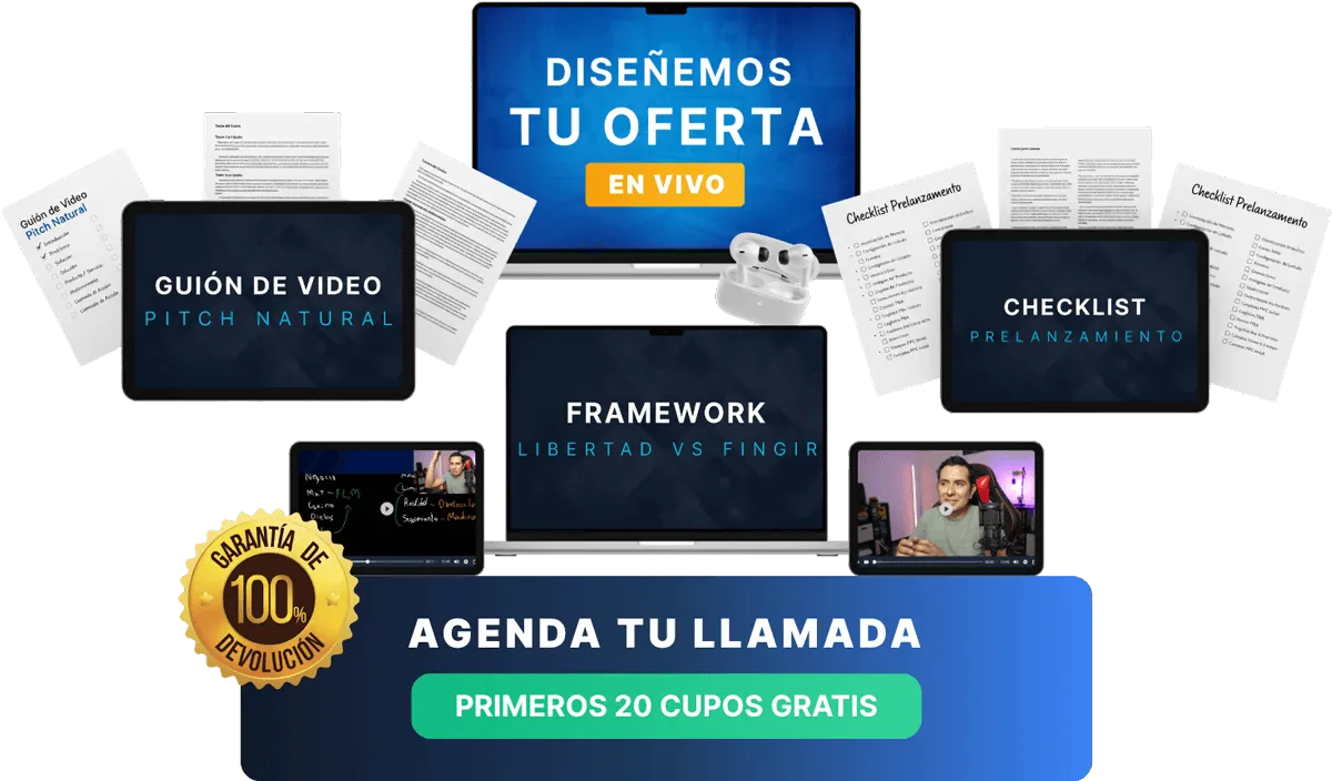 Recibirás una sesión EN VIVO de 60-90 minutos por Zoom donde diseñamos tu oferta juntos.